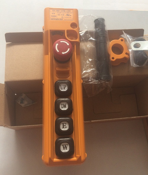 Tay bấm điều khiển 4 nút HY-1024SBB cho cầu trục điện của hãng HANYOUNG Nux do chúng tôi nhập khẩu trực tiếp từ Hàn Quốc với chất lượng tốt, hoạt động ổn định, có giá bán cạnh tranh nhất.